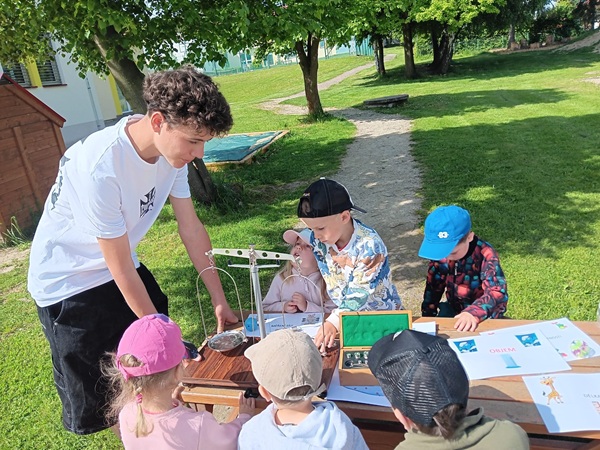Dubné - Zahrada Mateřské školy v Dubném se v uplynulém týdnu proměnila v improvizované vědecké stanoviště. Deváťáci z místní základní školy si pod vedením paní učitelky Holé připravili pro děti z mateřinky zábavné a zároveň poučné dopoledne plné vědeckých pokusů.
